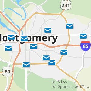 All 11 locations in Montgomery, Alabama with operating hours, phone numbers, and postal services around Montgomery County.