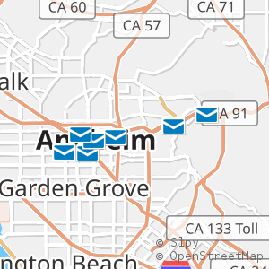 All 7 locations in Anaheim, California with operating hours, phone numbers, and postal services around Orange County.