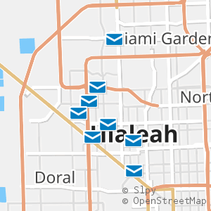 All 8 locations in Hialeah, Florida with operating hours, phone numbers, and postal services around Dade County.