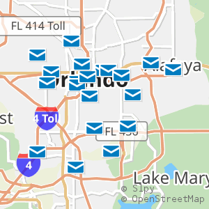 All 22 locations in Orlando, Florida with operating hours, phone numbers, and postal services around Orange County.