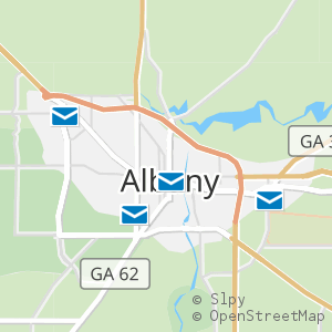 All 5 locations in Albany, Georgia with operating hours, phone numbers, and postal services around Dougherty County.