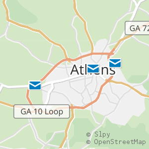 All 4 locations in Athens, Georgia with operating hours, phone numbers, and postal services around Clarke County.