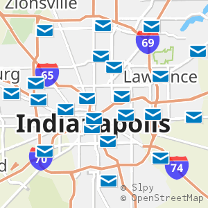 All 22 locations in Indianapolis, Indiana with operating hours, phone numbers, and postal services around Marion County.