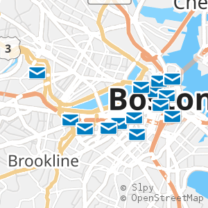 All 14 locations in Boston, Massachusetts with operating hours, phone numbers, and postal services around Suffolk County.