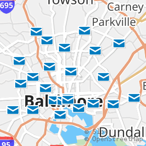 All 25 locations in Baltimore, Maryland with operating hours, phone numbers, and postal services around Baltimore (City) County.