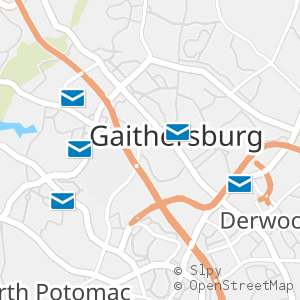 All 5 locations in Gaithersburg, Maryland with operating hours, phone numbers, and postal services around Montgomery County.