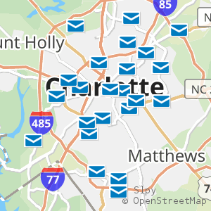 All 24 locations in Charlotte, North Carolina with operating hours, phone numbers, and postal services around Mecklenburg County.