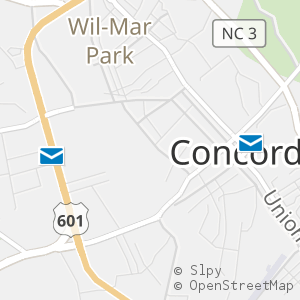 All 2 locations in Concord, North Carolina with operating hours, phone numbers, and postal services around Cabarrus County.