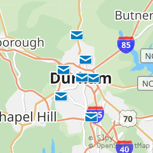 All 7 locations in Durham, North Carolina with operating hours, phone numbers, and postal services around Durham County.