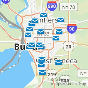 All 18 locations in Buffalo, New York with operating hours, phone numbers, and postal services around Erie County.