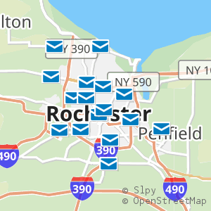 All 17 locations in Rochester, New York with operating hours, phone numbers, and postal services around Monroe County.