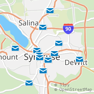 All 12 locations in Syracuse, New York with operating hours, phone numbers, and postal services around Onondaga County.