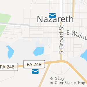 All 2 locations in Nazareth, Pennsylvania with operating hours, phone numbers, and postal services around Northampton County.