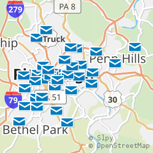 All 38 locations in Pittsburgh, Pennsylvania with operating hours, phone numbers, and postal services around Allegheny County.