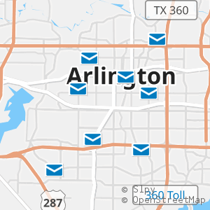 All 9 locations in Arlington, Texas with operating hours, phone numbers, and postal services around Tarrant County.