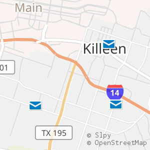 All 3 locations in Killeen, Texas with operating hours, phone numbers, and postal services around Bell County.