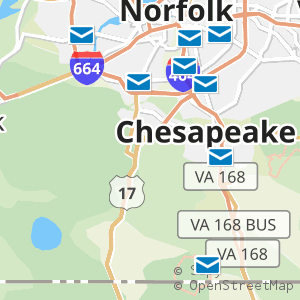 All 9 locations in Chesapeake, Virginia with operating hours, phone numbers, and postal services around Chesapeake (City) County.