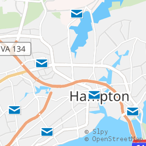 All 7 locations in Hampton, Virginia with operating hours, phone numbers, and postal services around Hampton (City) County.
