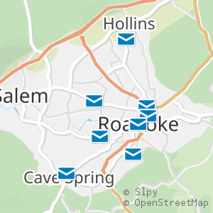 All 8 locations in Roanoke, Virginia with operating hours, phone numbers, and postal services around Roanoke (City) County.