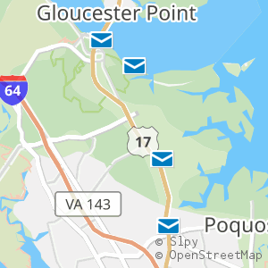 All 4 locations in Yorktown, Virginia with operating hours, phone numbers, and postal services around York County.