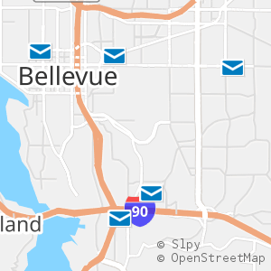 All 5 locations in Bellevue, Washington with operating hours, phone numbers, and postal services around King County.