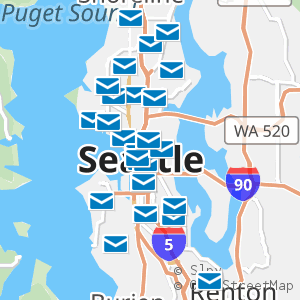 All 28 locations in Seattle, Washington with operating hours, phone numbers, and postal services around King County.