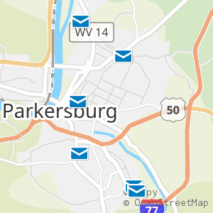 All 6 locations in Parkersburg, West Virginia with operating hours, phone numbers, and postal services around Wood County.